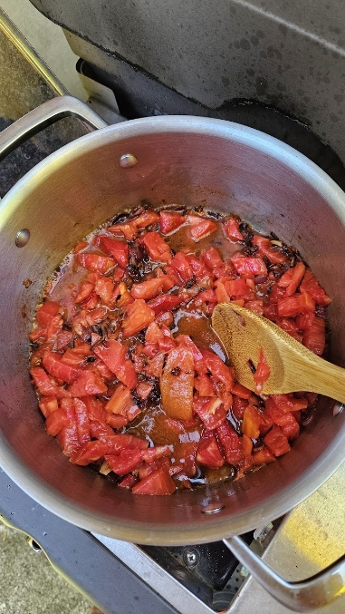 I sliced tomatoes, onions, garlic, and a few innocent-looking hot peppers. First, I caramelized the onions, then added tomatoes and garlic. Everything was going smoothly—too smoothly. About 20 minutes later, I added the peppers.
