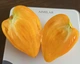 An indeterminate, mid-season variety, the plant is vigorous and very productive. The fruits are large, golden-yellow, heart-shaped, some with a curved “nose” — a fox’s nose, weighing 200–400 g.