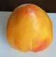 The fruits are uniformed in size beautiful, heart-shaped, yellow-orange with red stripes, a blush, and a pink “cap.” The average fruit weight is 300-500 g. No cracks, no green shoulders.